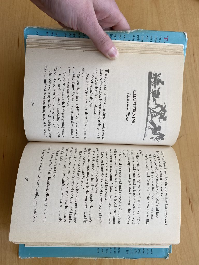 This assignment was particularly interesting because the book I was analyzing was one of my favorite books as a child, and I therefore knew why a lot of the things I observed were present. Trying to abstract myself from the book and discover facts that I already knew about it through sheer observation of physical attributes really opened my eyes to the implications of different aspects of the book. I wonder, however, how an individual’s use of a book can obfuscate information provided by its original physical format. For example, I was able to discern that this copy of “The Penderwicks on Gardam Street” was a well-made book that had been worn down through use instead of a poor quality object that had quickly fallen apart in part because I was the reader. Would I have made the same assumptions if I hadn’t had this inside knowledge? In what ways can a reader’s treatment of a book change the way it is interpreted by a book historian?